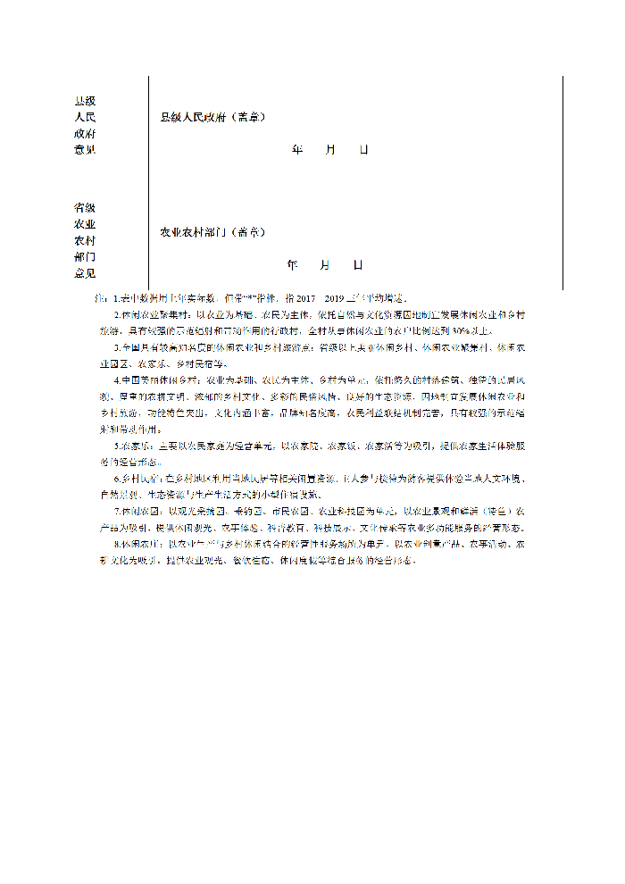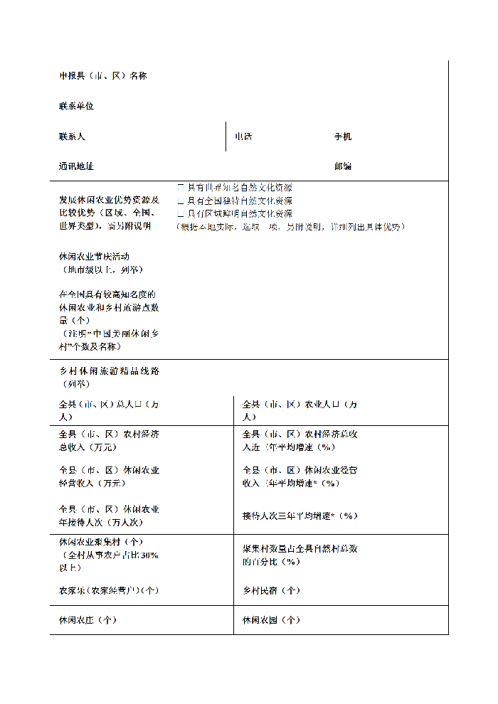 ?。ㄒ唬┥陥髷?shù)量。農業(yè)農村部將根據各地休閑農業(yè)發(fā)展水平,確定每年總量及分省申報控制數(shù)。今年每省(自治區(qū)、直轄市)申請名額不超過2個(計劃單列市名額計入本省指標)。