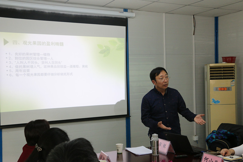 本次沙龍主題為“現(xiàn)代觀光果園的建設與運營”?,F(xiàn)代觀光果園相異于早期果園,其將綠色果品生產(chǎn)和生態(tài)旅游相結(jié)合,并融入了景觀、生態(tài)概念,是日益風靡的觀光農(nóng)業(yè)的重要分支之一?;顒友埖搅吮本┦修r(nóng)林科學院林業(yè)果樹研究所張銳研究員,張老師就“如何規(guī)劃建設好一個觀光果園”做了主題分享,精彩獨到的講解受到了參會人員的熱烈好評。