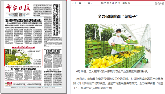 邢臺日報頭版刊發(fā)——全力保障首都“菜籃子”
