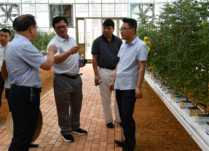 ▼6月2日上午,廣西大學(xué)農(nóng)牧產(chǎn)業(yè)發(fā)展研究院院長(zhǎng)韋英明一行到廣西現(xiàn)代農(nóng)業(yè)技術(shù)試驗(yàn)站考察設(shè)施農(nóng)業(yè)項(xiàng)目,廣西區(qū)農(nóng)業(yè)技術(shù)推廣總站站長(zhǎng)賓士友接待,中農(nóng)富通分支機(jī)構(gòu)——廣西中農(nóng)富桂農(nóng)業(yè)科技發(fā)展有限公司總經(jīng)理韓雪松陪同考察。