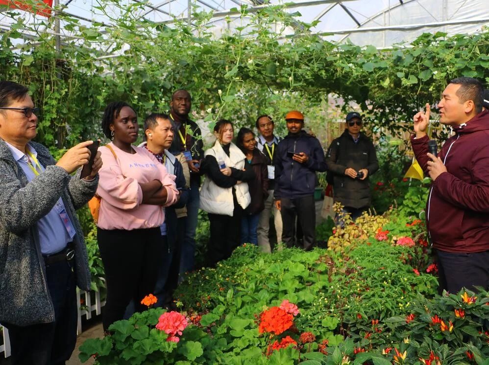 ▼10月29日,商務(wù)部國(guó)際商務(wù)官員研修學(xué)院--2019年發(fā)展中國(guó)家落實(shí)2030可持續(xù)發(fā)展議程研修班柬埔寨、肯尼亞、利比里亞、馬拉維、蒙古、斯里蘭卡等12個(gè)國(guó)家處級(jí)干部到中農(nóng)富通示范基地——北京國(guó)際都市農(nóng)業(yè)科技園參觀考察,考察團(tuán)對(duì)科技園高科技栽培模式、新奇特果蔬等尤為感興趣,紛紛大加贊賞。