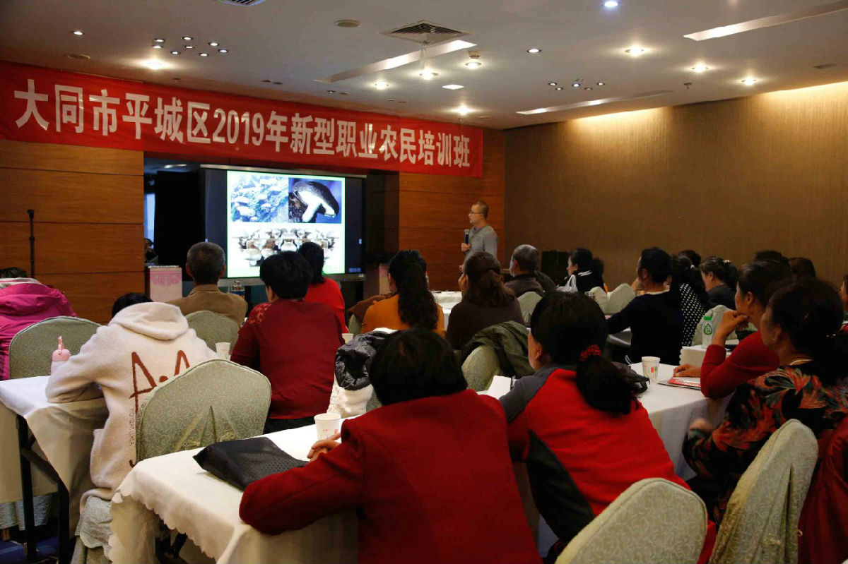 ▼為全面推進(jìn)鄉(xiāng)村振興戰(zhàn)略實(shí)施,提升農(nóng)民素質(zhì),打造一支適現(xiàn)代農(nóng)業(yè)發(fā)展的高素質(zhì)技能人才隊(duì)伍,大同農(nóng)業(yè)嘉年華在平城區(qū)農(nóng)業(yè)農(nóng)村局的組織指導(dǎo)下,開(kāi)展2019年平城區(qū)高素質(zhì)農(nóng)民培訓(xùn)工作。目標(biāo)任務(wù)是培育專(zhuān)業(yè)技能、專(zhuān)業(yè)服務(wù)型高素質(zhì)農(nóng)民100人,新型農(nóng)業(yè)經(jīng)營(yíng)主體、服務(wù)主體帶頭人85人。首期食用菌培訓(xùn)班于10月31日開(kāi)始,為期五天。