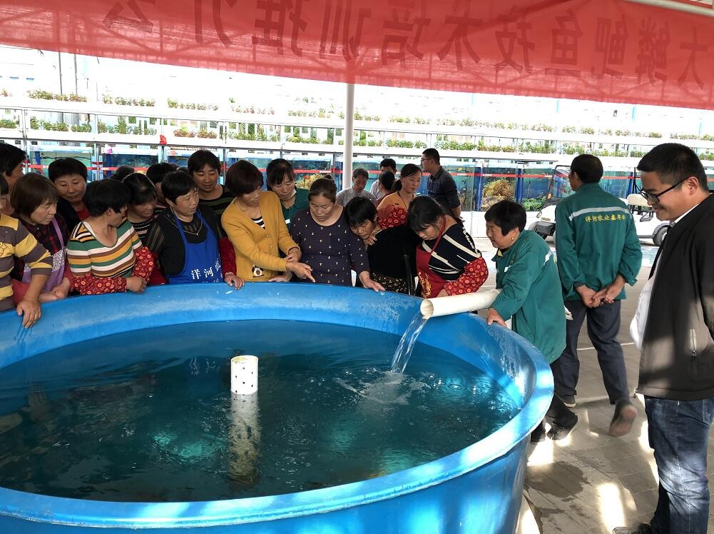 ▼11月1日,宿遷市農(nóng)業(yè)科學(xué)研究院主任為洋河農(nóng)業(yè)嘉年華場(chǎng)館技術(shù)工人培訓(xùn)蟹池套養(yǎng)大鱗鲃魚(yú)技術(shù)。
