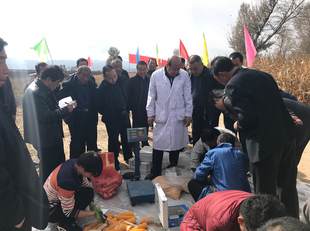 ▼10月22日,山西中農(nóng)富神高原作物農(nóng)業(yè)研究有限公司組織了玉米片區(qū)的測產(chǎn)工作,在王富榮教授的帶領(lǐng)下,依據(jù)農(nóng)業(yè)農(nóng)村部玉米專家指導(dǎo)組和全國玉米栽培學(xué)組制定的《關(guān)于玉米高產(chǎn)、超高產(chǎn)田間測產(chǎn)驗收方法和標準》進行實收,實收測產(chǎn)結(jié)果為平均每畝實收籽粒重803.04公斤,籽粒含水率為26.98%,折合標準籽粒含水量14%后實收畝產(chǎn)為698.81公斤。相比村民種植的玉米,富神公司采用的深松整地技術(shù)種植的玉米產(chǎn)量要高出很多。