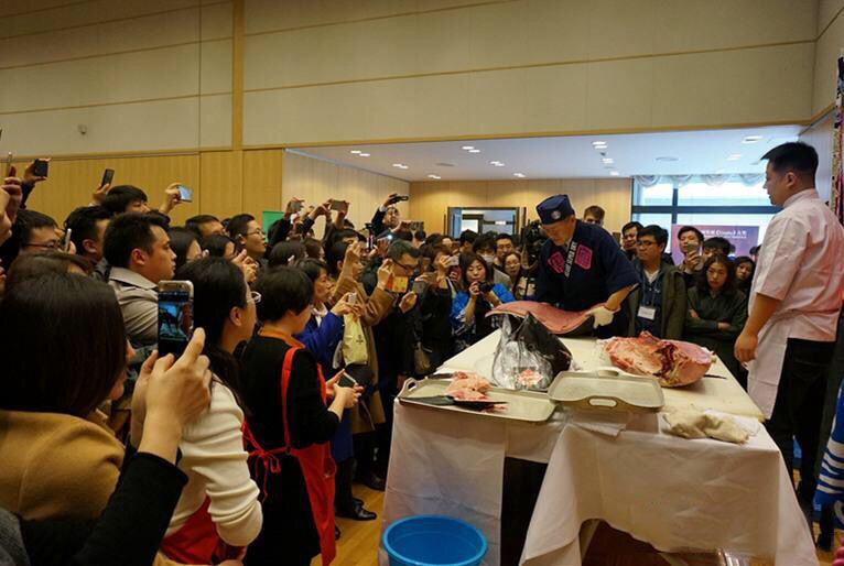 在活動現(xiàn)場,來自北京日本調理師會的幾位日本料理人現(xiàn)場演示解體了一條藍鰭金槍魚,成為了全場的焦點,讓更多人感受到了日本飲食的魅力,還原純粹的日本飲食文化。