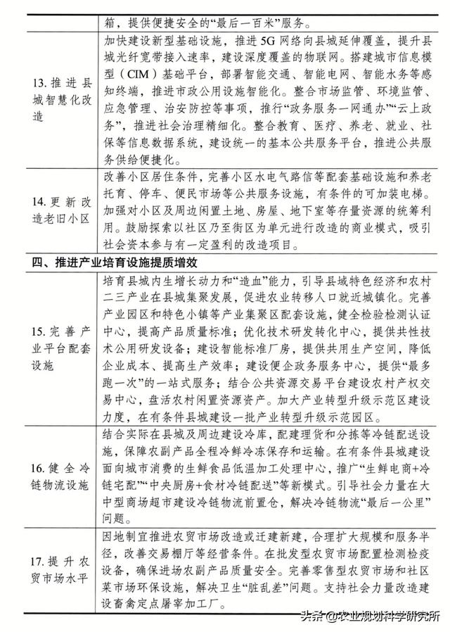 (二)明晰建設(shè)領(lǐng)域。各地區(qū)要瞄準(zhǔn)市場不能有效配置資源、需要政府支持引導(dǎo)的公共領(lǐng)域,聚力推進(jìn)17項(xiàng)建設(shè)任務(wù)。圍繞公共服務(wù)設(shè)施提標(biāo)擴(kuò)面,優(yōu)化醫(yī)療衛(wèi)生設(shè)施、教育設(shè)施、養(yǎng)老托育設(shè)施、文旅體育設(shè)施、社會(huì)福利設(shè)施和社區(qū)綜合服務(wù)設(shè)施。圍繞環(huán)境衛(wèi)生設(shè)施提級(jí)擴(kuò)能,完善垃圾無害化資源化處理設(shè)施、污水集中處理設(shè)施和縣城公共廁所。圍繞市政公用設(shè)施提擋升級(jí),推進(jìn)市政交通設(shè)施、市政管網(wǎng)設(shè)施、配送投遞設(shè)施、老舊小區(qū)更新改造和縣城智慧化改造。圍繞產(chǎn)業(yè)培育設(shè)施提質(zhì)增效,完善產(chǎn)業(yè)平臺(tái)配套設(shè)施、冷鏈物流設(shè)施和農(nóng)貿(mào)市場。