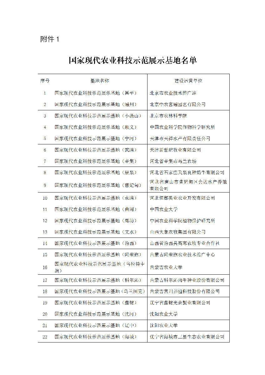 附件:1.國家現(xiàn)代農(nóng)業(yè)科技示范展示基地名單