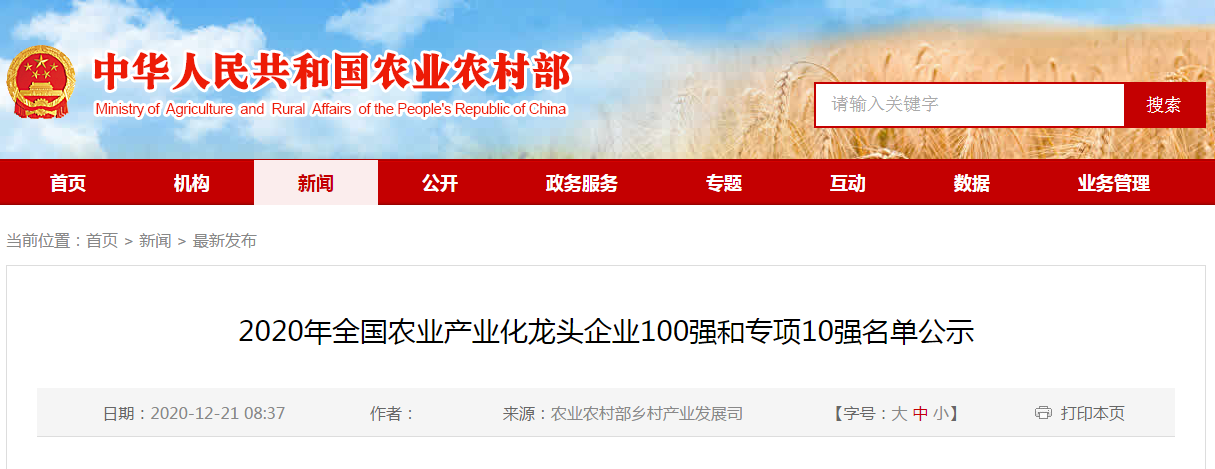 按照《中國農(nóng)業(yè)產(chǎn)業(yè)化龍頭企業(yè)協(xié)會關(guān)于開展全國農(nóng)業(yè)產(chǎn)業(yè)化龍頭企業(yè)100強推介活動的通知》要求,經(jīng)企業(yè)自愿申報和專家審核,擬將中糧集團有限公司等確定為2020年全國......