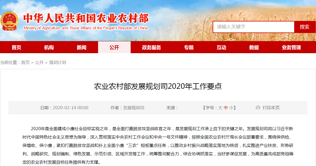 農(nóng)業(yè)農(nóng)村部發(fā)展規(guī)劃司2020年工作要點...