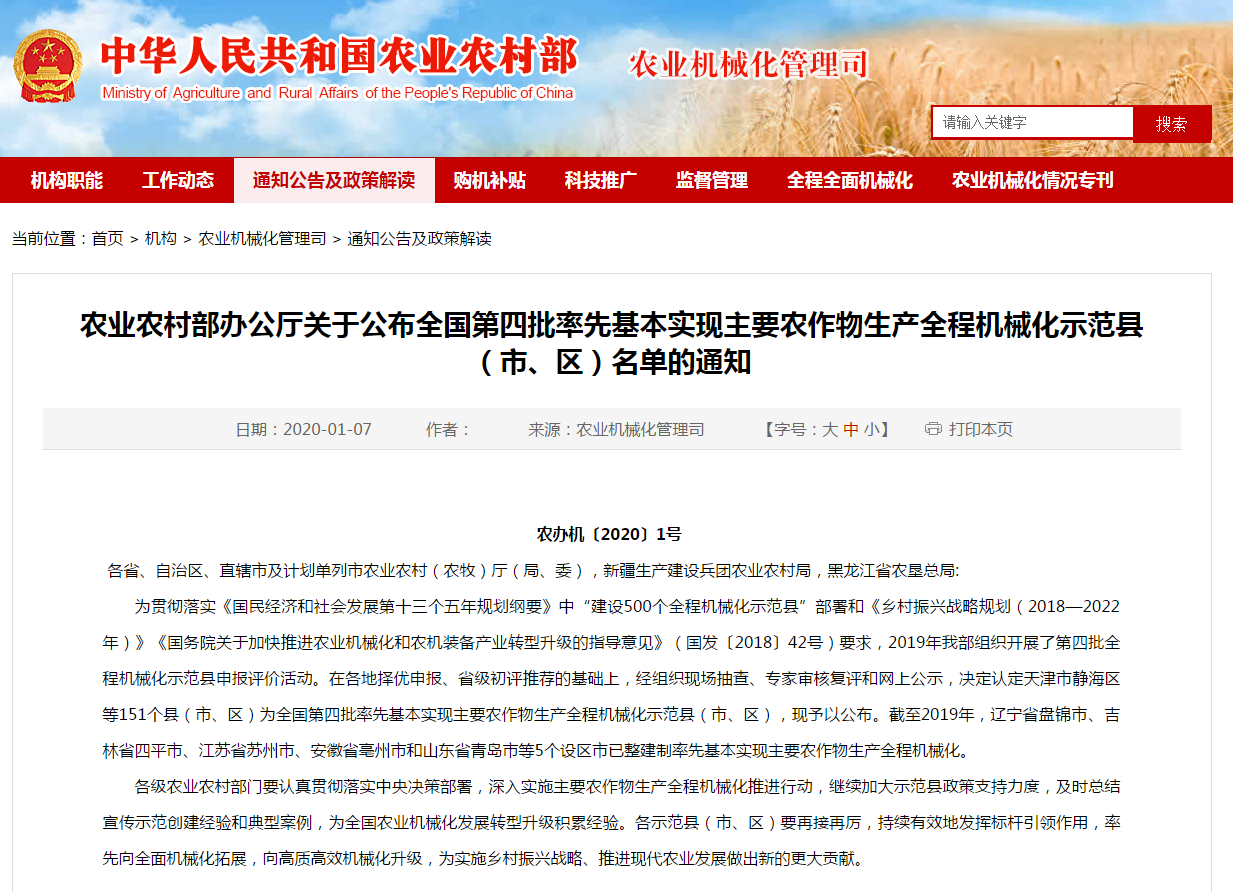 為貫徹落實《國民經(jīng)濟和社會發(fā)展第十三個五年規(guī)劃綱要》中“建設500個全程機械化示范縣”部署和《鄉(xiāng)村振興戰(zhàn)略規(guī)劃(2018—2022年)》《國務院關(guān)于加快推進農(nóng)業(yè)......