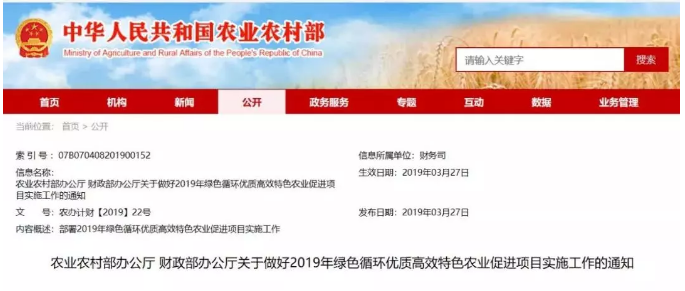 為貫徹落實中央一號文件精神,培育壯大鄉(xiāng)村特色產(chǎn)業(yè),助力產(chǎn)業(yè)興旺,助推鄉(xiāng)村振興戰(zhàn)略實施,2019年農(nóng)業(yè)農(nóng)村部、財政部繼續(xù)支持部分省份實施綠色循環(huán)優(yōu)質(zhì)高效特色農(nóng)業(yè)促......